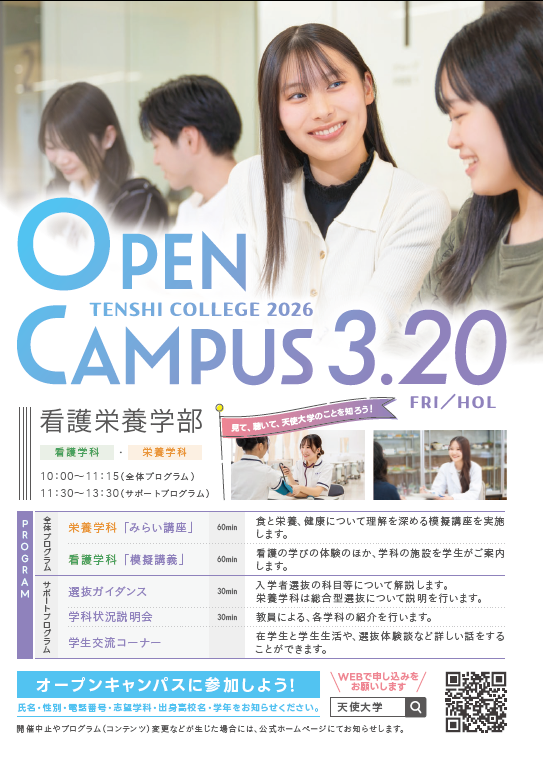 天使大学看護栄養学部オープンキャンパスを開催いたします!