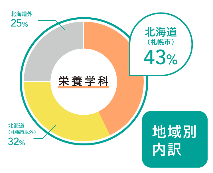 実習施設については、両学科ともに80%以上が札幌市内にあり、住居から通学するのに非常に便利です。また、栄養学科の一部実習では、遠隔地の学生に対して自宅近くの実習先を認めるなど、柔軟な対応を行っています。