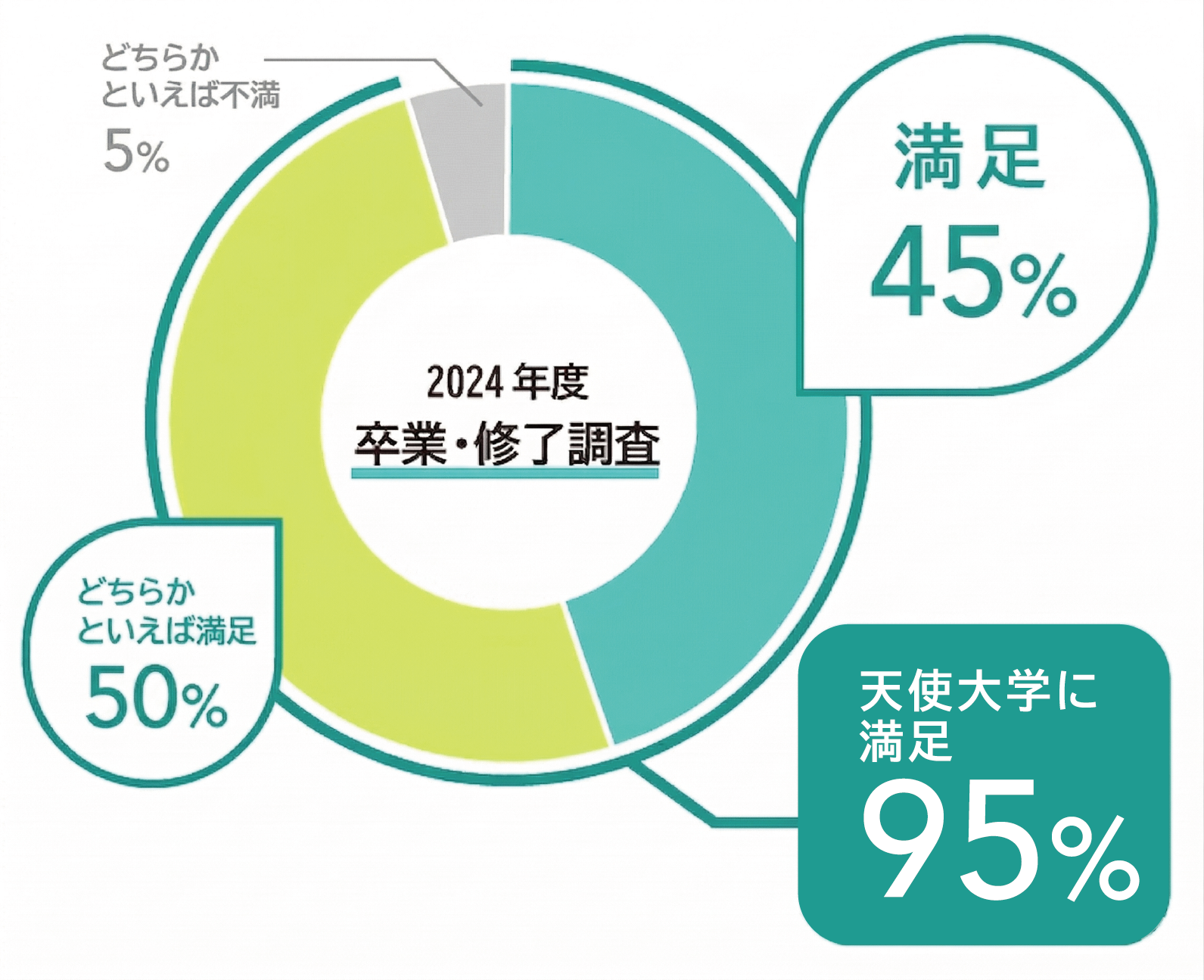 天使大学を卒業・修了された学生の約96%が、大学での学びや経験に満足していると回答