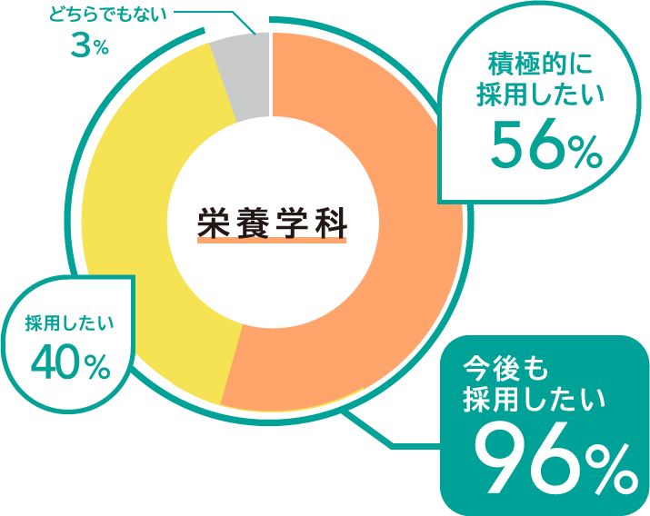 天使大学で学んだ学生は、就職先からも高く評価され、多くの求人をいただいています。就職先アンケートの結果によると、『援助を必要とする人に愛情をもって接することができる』『目標を立てて取り組むことができる』『倫理的配慮ができる』『他者と協力できる』といった能力が、卒業生の特長として特に評価されています。