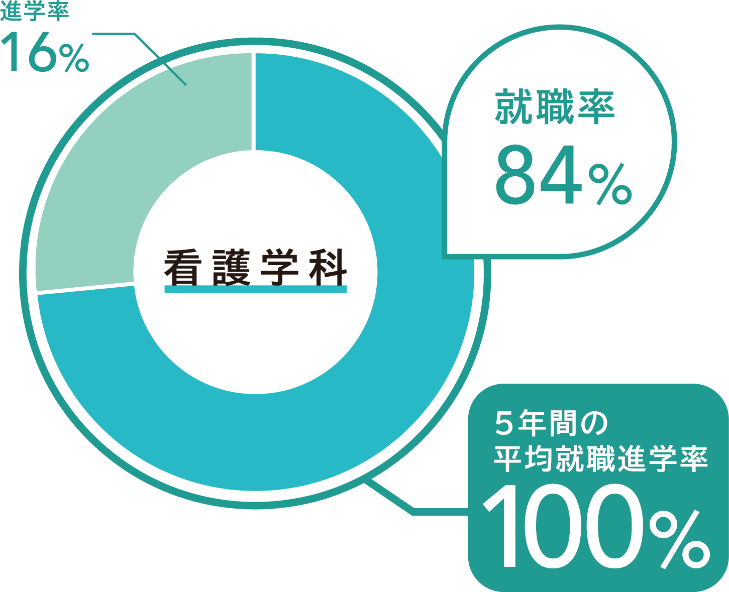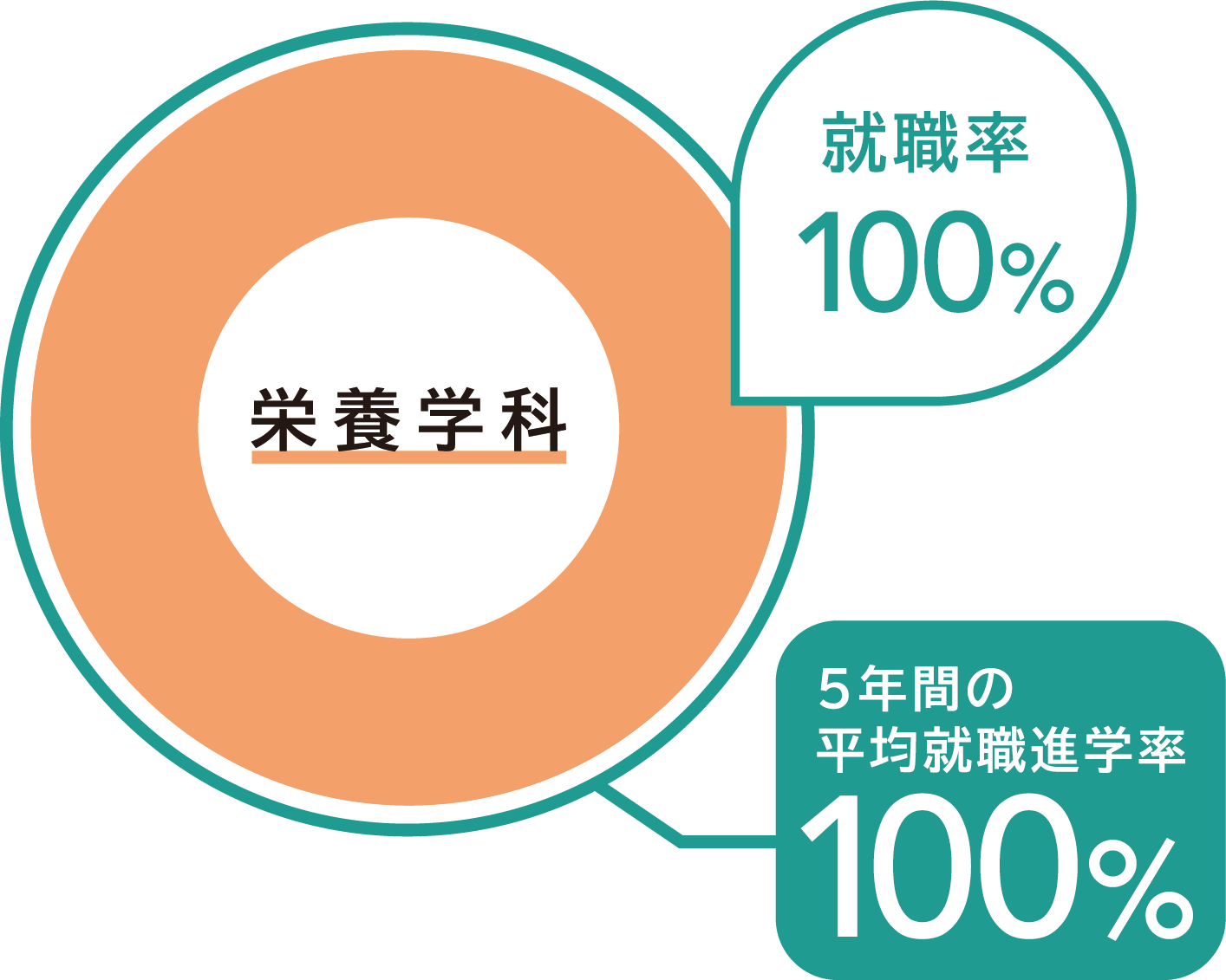 過去5年間の平均就職進学率は 看護学科・栄養学科ともに100%!!