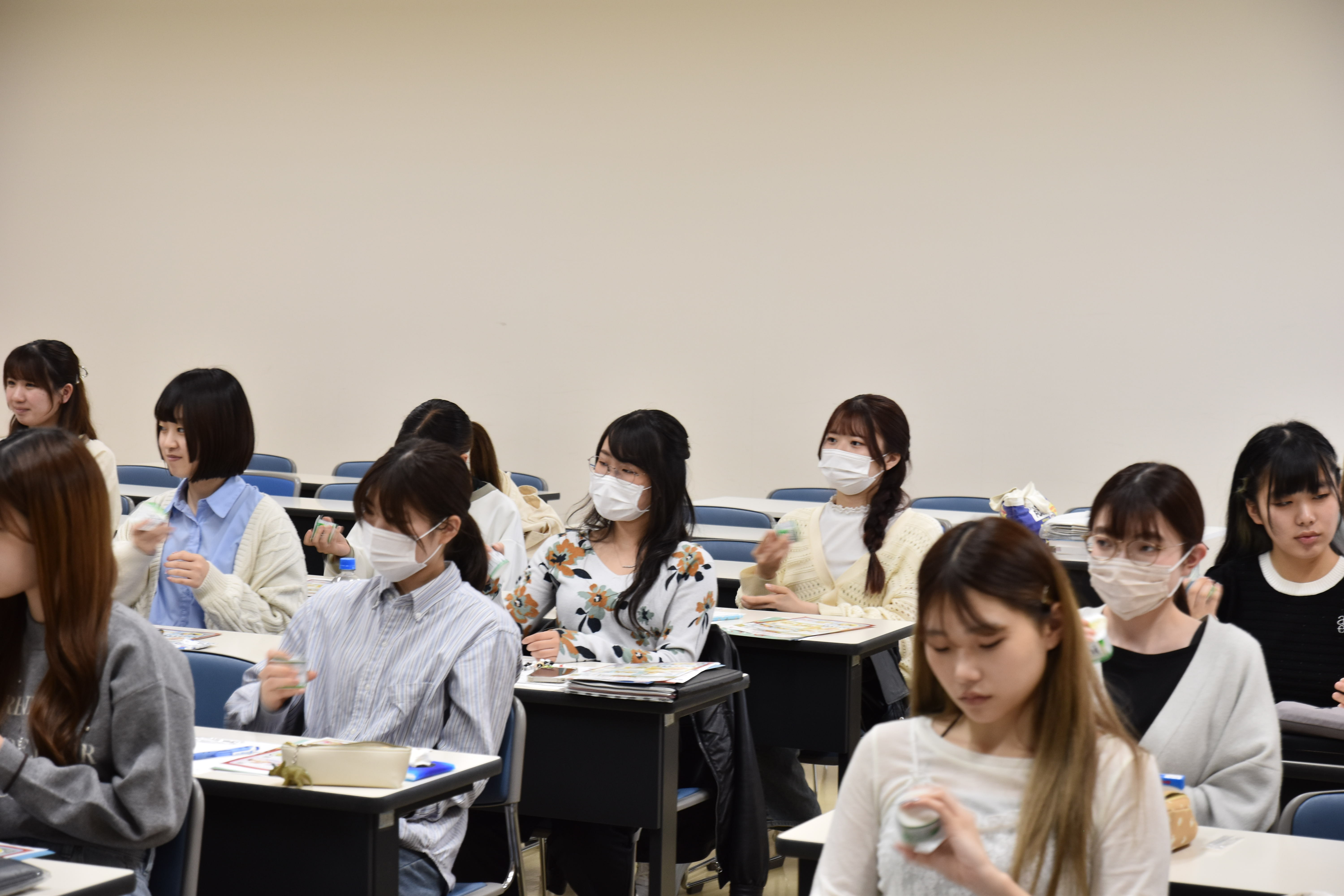 講義の中では、牛乳の成分や殺菌方法を含む製造工程、そして、ヨーグルトに含まれている乳酸菌などの確認、歴史についてなど、興味深いお話しをしていただきました。