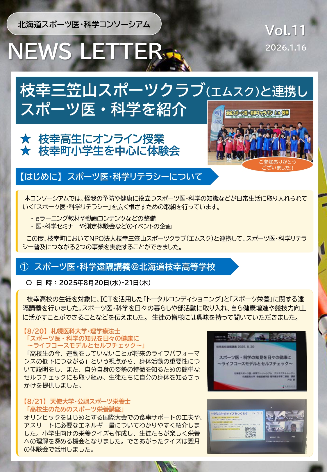 天使大学が加盟する「北海道スポーツ医・科学コンソーシアム」からニュースレターが発行されました。